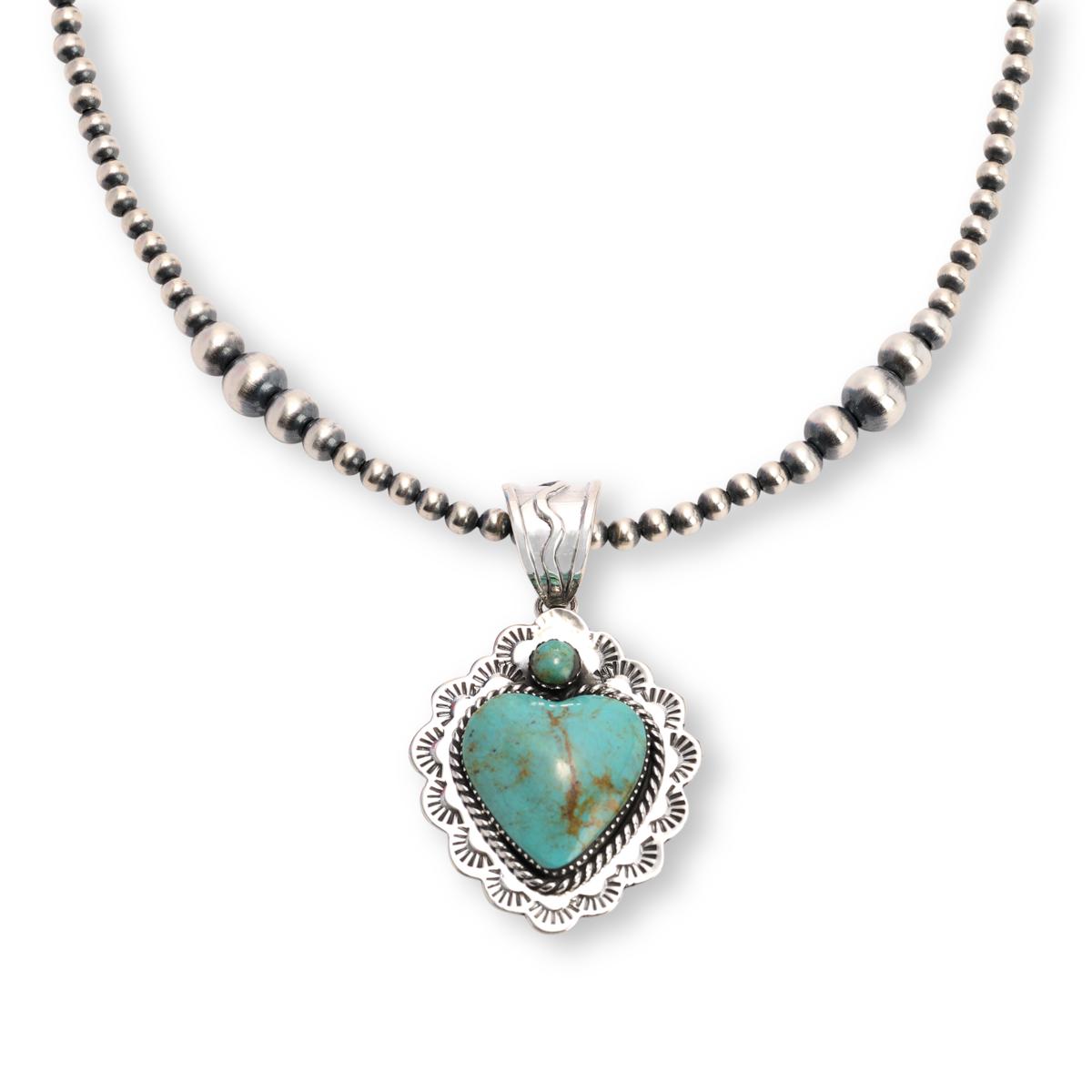 Chaco Canyon Turquoise Heart Pendant with Silver Bead Necklace
