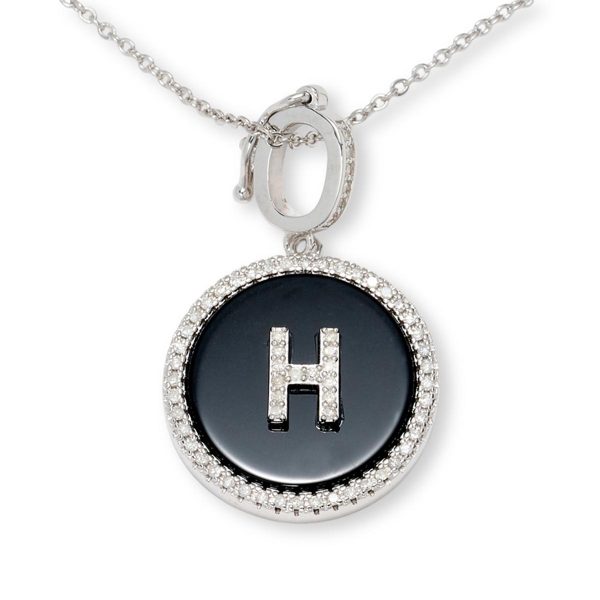 Colleen Lopez Black Onyx & Diamond Initial Enhancer Pendant with Chain