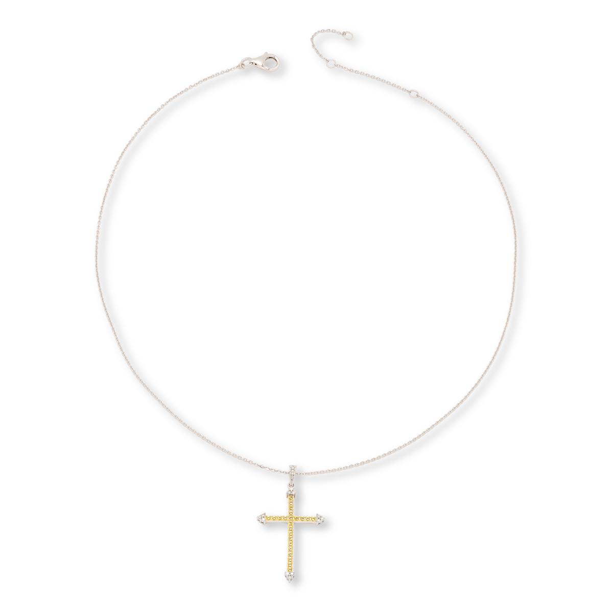 - Sterling silver cross-shaped pendant with choice of colored sapphires and white diamonds