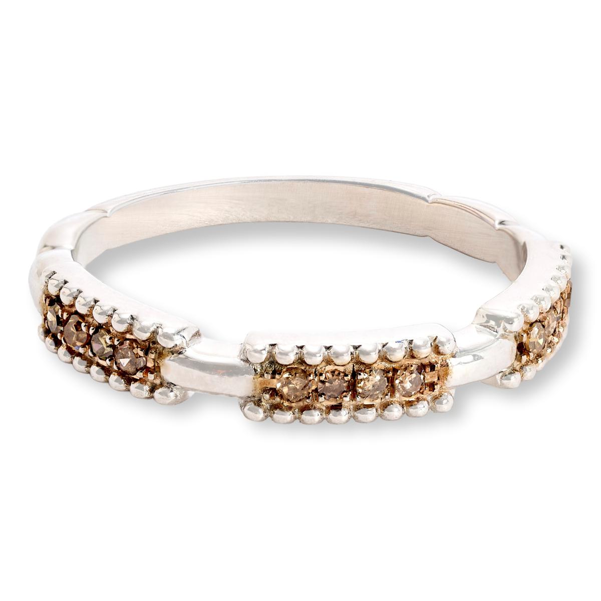 Add a touch of subtle, sparkling color to your fingers with the addition of a diamond band ring. This simple, slender band features your choice of Black, Champagne, Yellow or While diamonds, grouped in sections across the top. Pick up several to wear on multiple fingers or to stack together for a more casual, layered look.