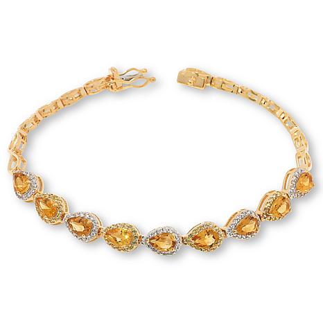 Colleen Lopez Sterling Silver Gemstone Pear Halo Line Bracelet