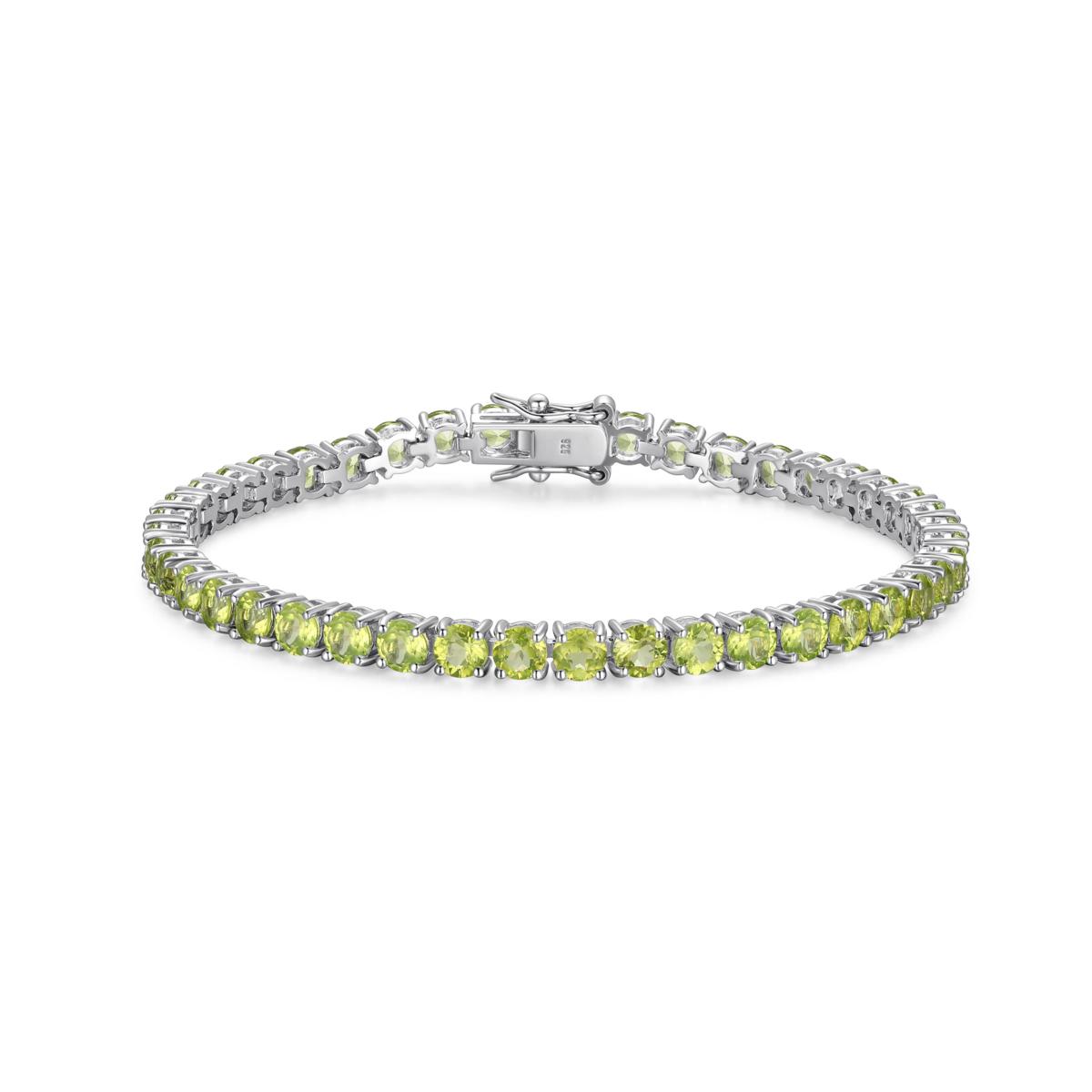 Adorn your wrist with the luxe look of sparkling colored gemstones. Set into a classic, tennis bracelet silhouette, this piece looks amazing worn alone or paired with other favorite pieces. Choice of green peridot or red garnet.