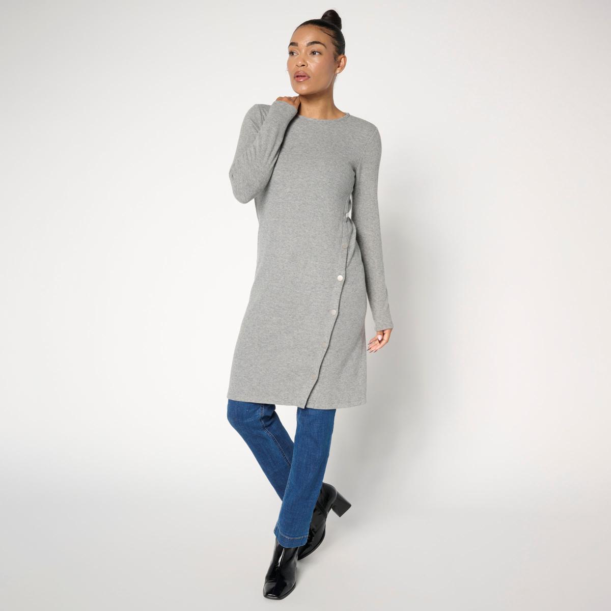 Make a grand entrance (and exit) in this head-turning drama top from Colleen Lopez. Designed in a tunic length (so, yes it covers your bum) and a dramatic, off-set buttoned side slit that gives off showstopping, double-take vibes any time you wear it.