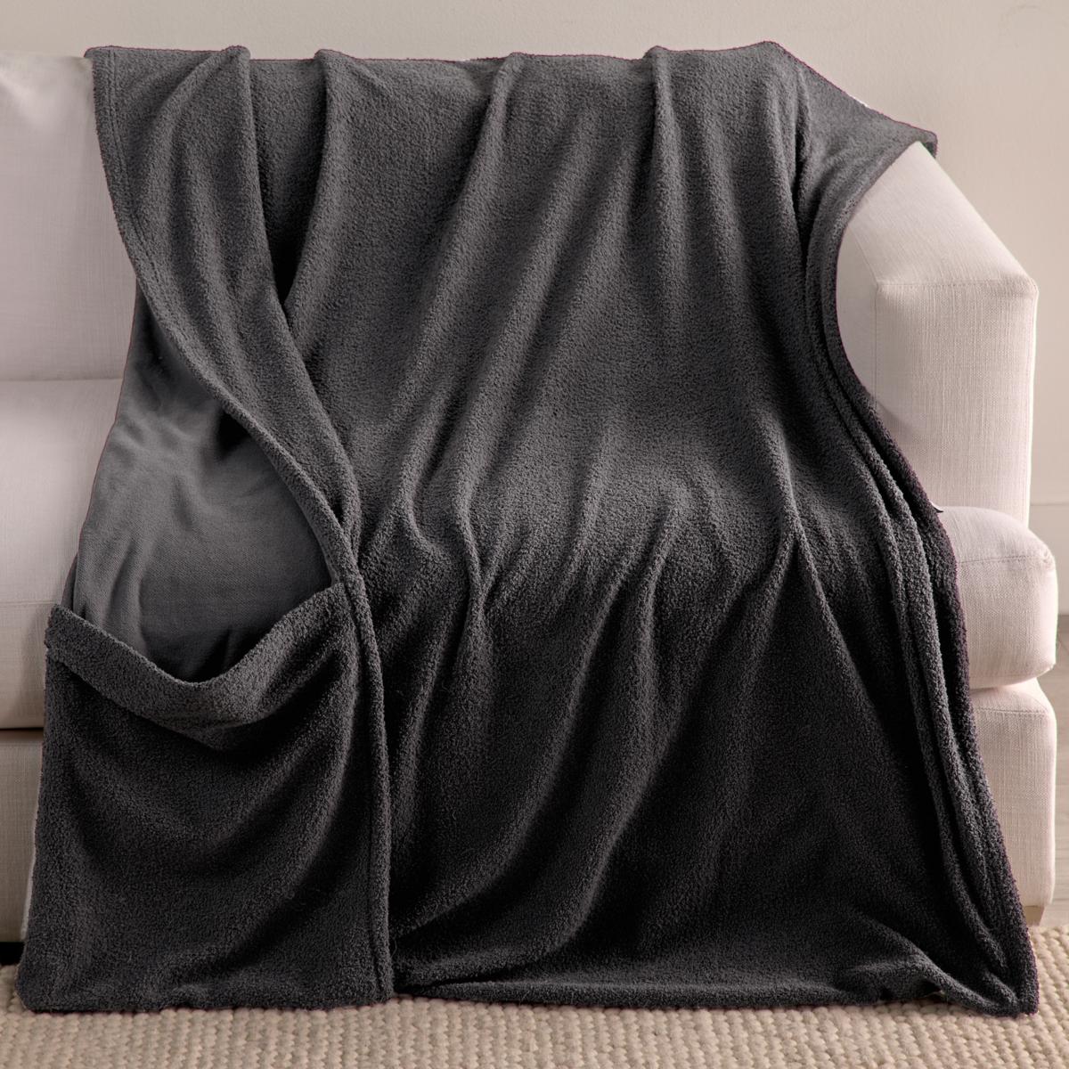 Plush and snug marshmallow Sherpa knit makes this blanket such a fun throw to toss just about anywhere. And that handy foot pocket means the blanket is especially comfy if "anywhere" is cuddled up on the sofa with a good book or watching a favorite flick.
