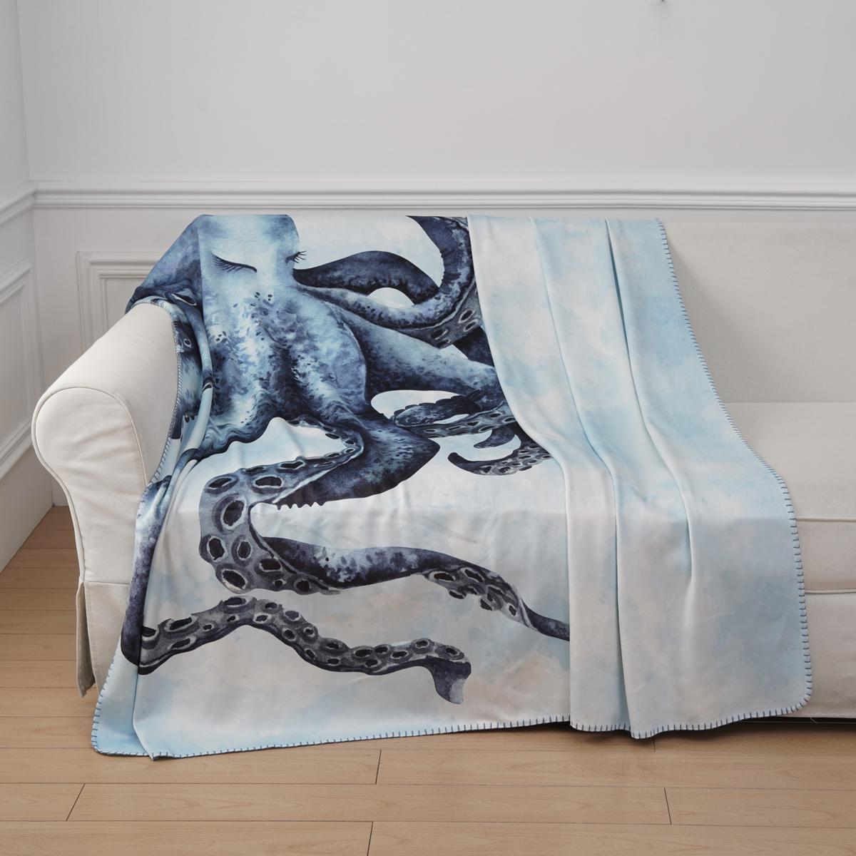 Dive into cozy comfort with the Concierge Collection Oversized Octopus Printed Plush Throw. Featuring a charming octopus print, this plush throw will add a touch of seaside charm to any space. Perfect for snuggling up, it's a great go-to for warmth and style.