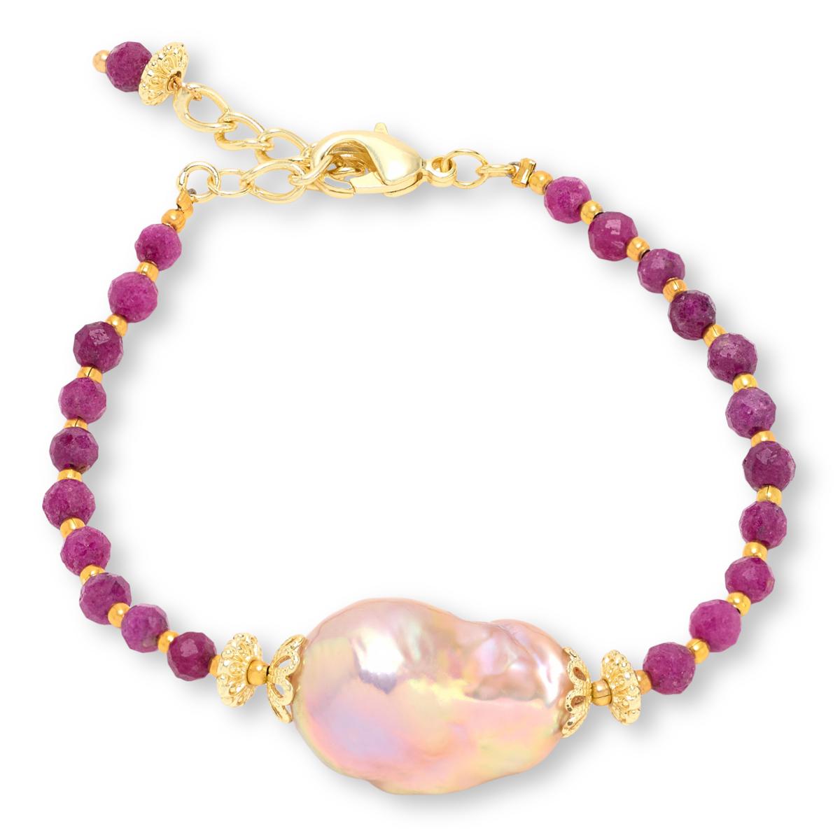 Bring a touch of natural elegance to your look with this beaded baroque pearl bracelet featuring the gemstone of your choice. Its adjustable length and polished finish make it a versatile accessory for day-to-night wear. The lobster clasp ensures a secure fit while the oval link chain adds a delicate texture.