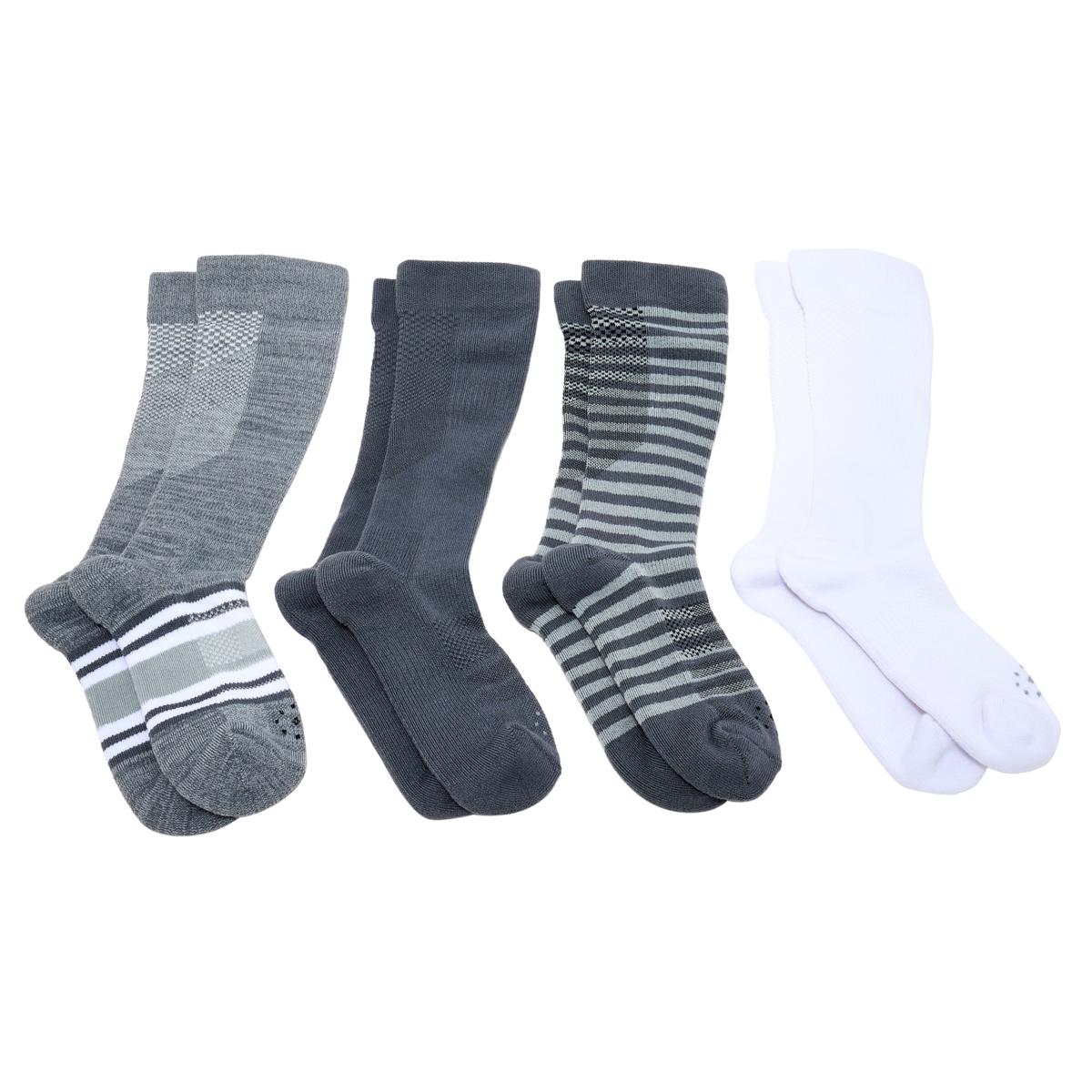 - 4 pairs of SnugStay compression OTC (over-the-calf) knee-high socks