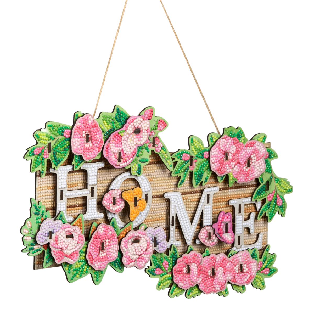 Made out of lightweight MDF and adorned with soft pink blooms, this Home sign can add sparkling style to your home decor. The all-inclusive set includes gems, tools and even a string to hang the sign, and it's perfect for beginners as well as experienced Diamond painting enthusiasts.