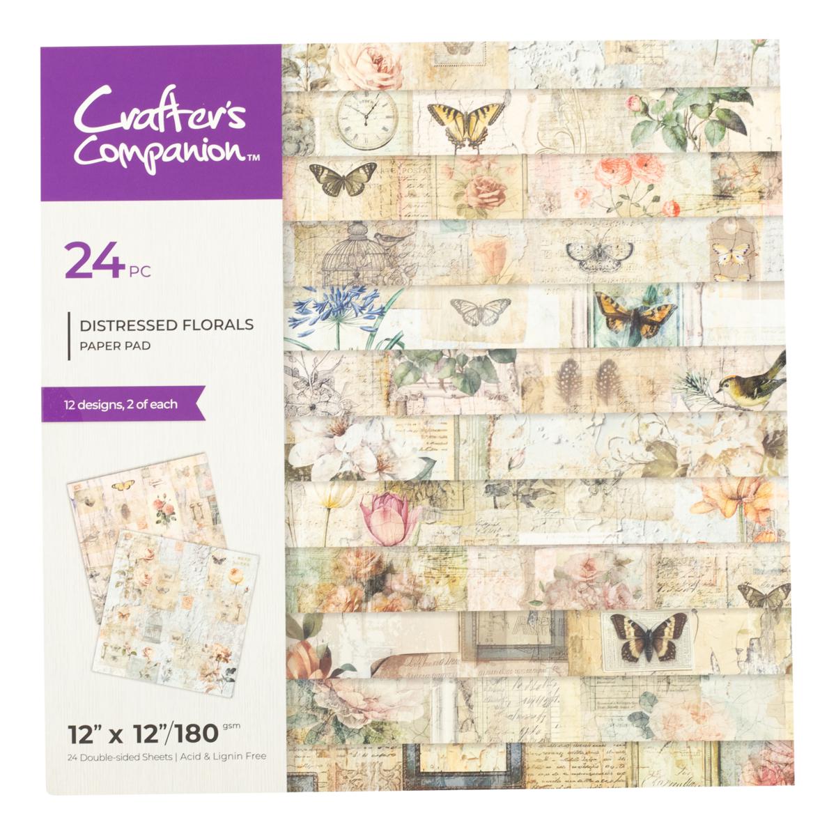Crafter's Companion Distressed Florals 12" x 12" Paper Pad - 24 Sheets