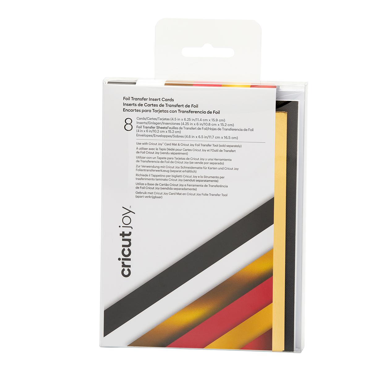 Create meaningful greeting cards that shine in no time with Foil Transfer Insert Cards for your Cricut Joy cutting machine. Each cut will reveal the hue of the insert inside. This ingenious glue-free design allows for two-tone, depth-filled cards without the hassle or mess of glue. Add amazing shimmer and shine to your card designs with included Foil Transfer Sheets. This set envelopes comes in an wide range of colors to please every card recipient on your list.