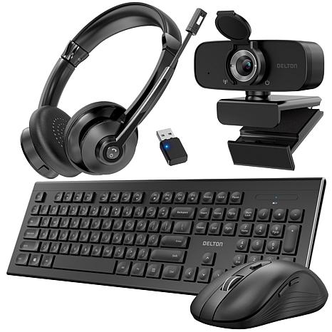 This four-in-one headset bundle is great for working from home or office Wireless connectivity makes the headset, keyboard, and mouse compatible with any PC or laptop, and the 1080P USB webcam connects directly to your device's USB port. Headset features memory foam cushions for all-day comfort, while the mouse features a wrist-friendly design.