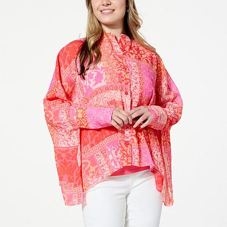 DG2 by Diane Gilman Crinkled Chiffon Button-Up Easy Poncho Top & Cami