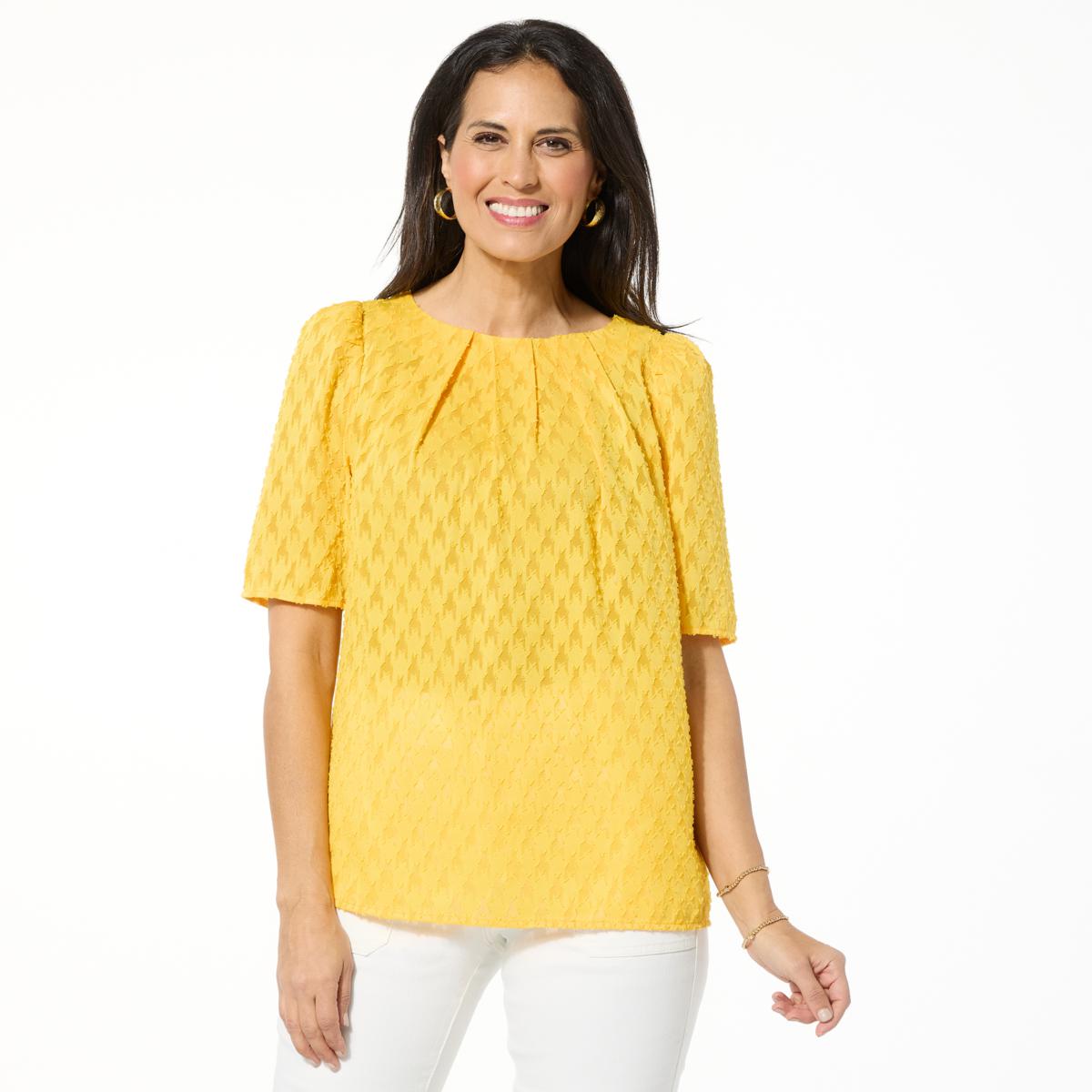 DG2 by Diane Gilman Geometric Clipped Jacquard Pleated Blouse