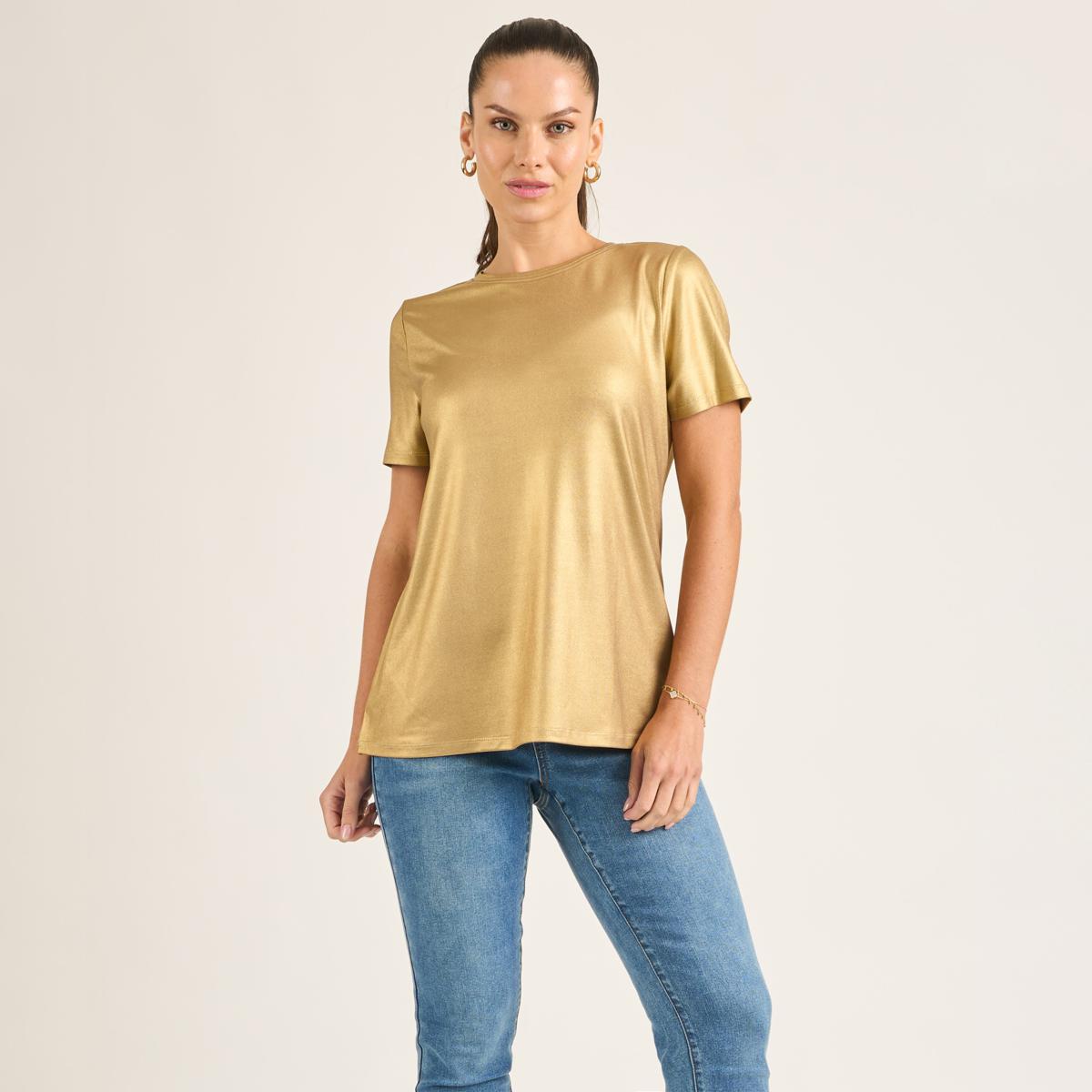 DG2 by Diane Gilman Metallic Foil Jersey Knit Short-Sleeve Tee