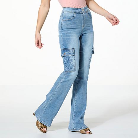 DG2 by Diane Gilman New Classic Stretch Denim Pull-On Cargo Flare Jean