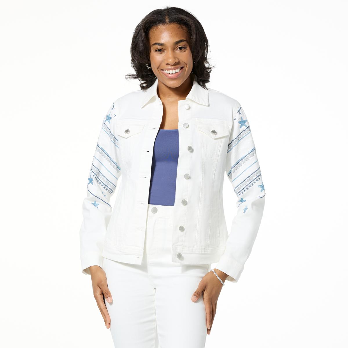 DG2 by Diane Gilman New Classic Stretch Denim Embellished Americana Jacket