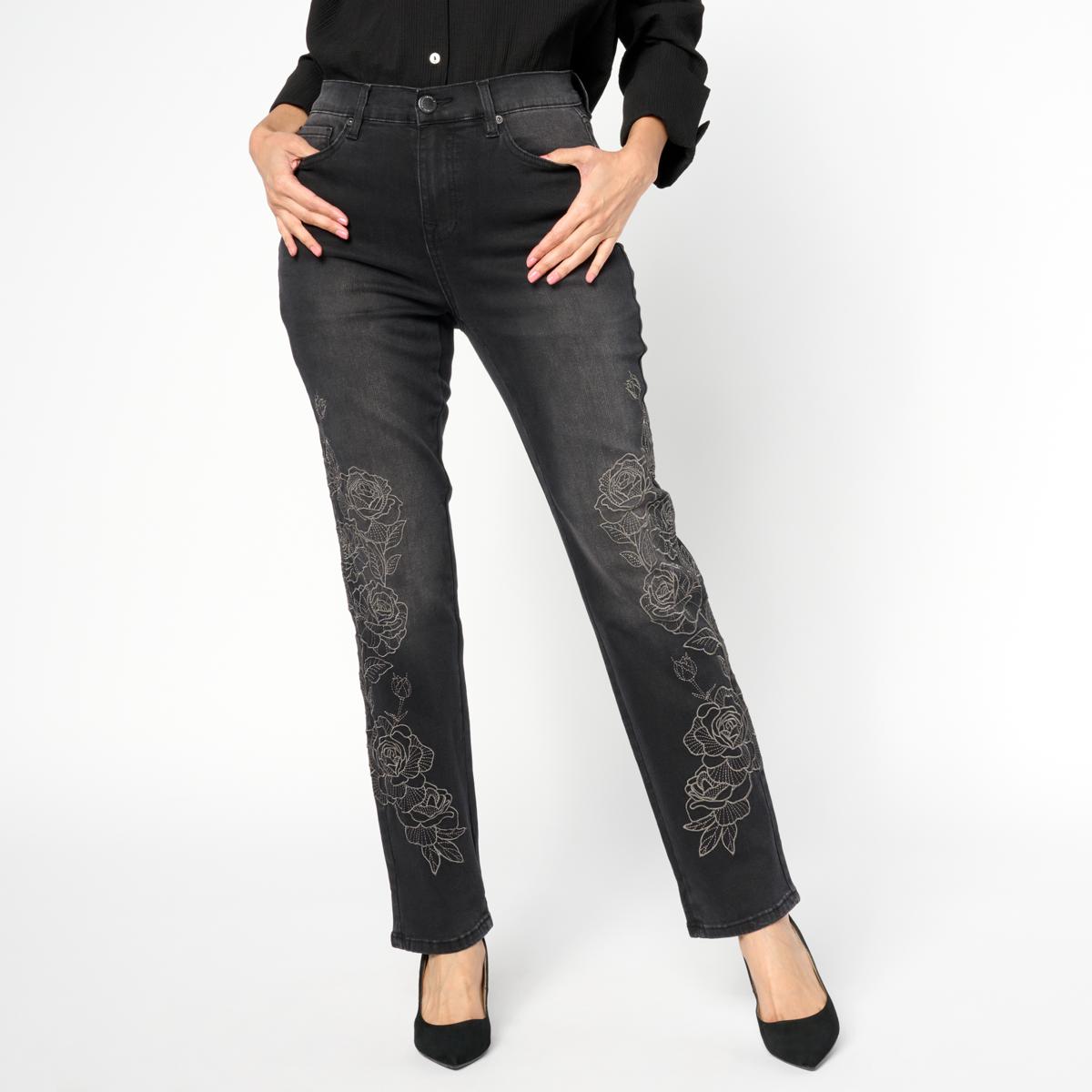 DG2 by Diane Gilman New Classic Stretch Rose-Embroidered Ankle Jean