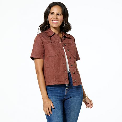 DG2 by Diane Gilman New Classic Stretch Short-Sleeve Denim Jacket