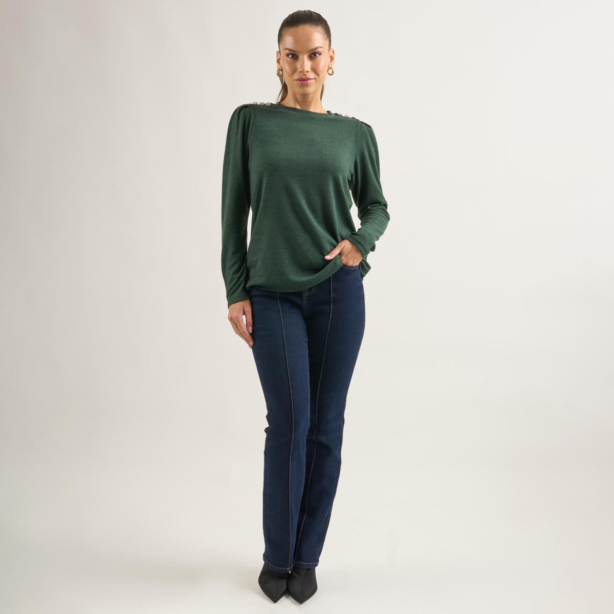 Meet your new favorite tee prettied up with statement-making novelty button detail. It’s a natural paired with jeans as part of your weekday work wardrobe.