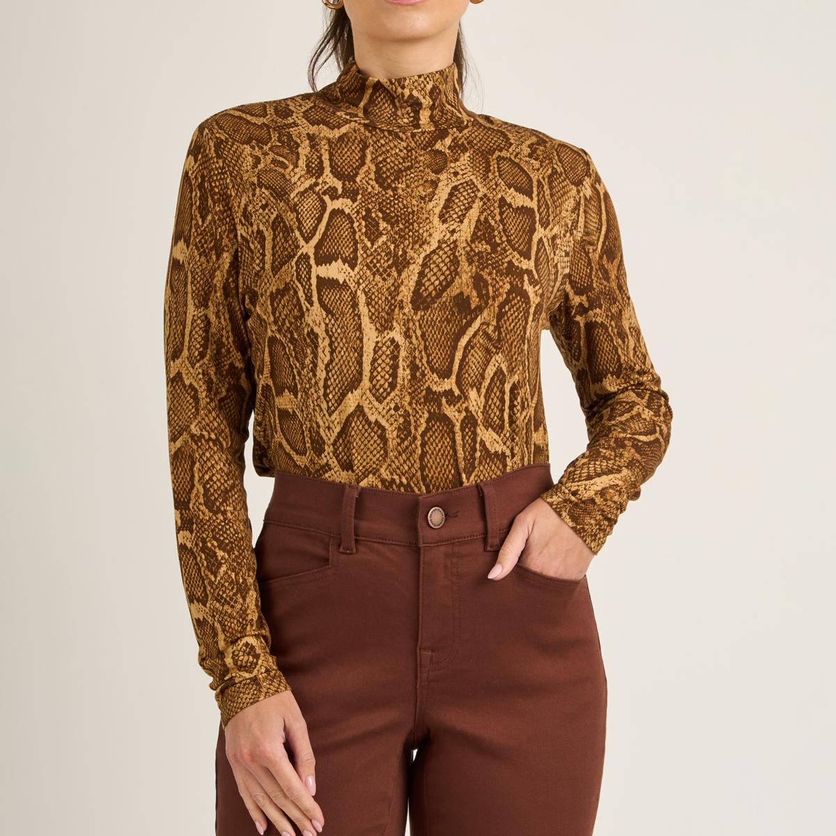 Classically chic and comfortable, this printed jersey knit top is a wardrobe essential for fall and winter looks. With a face-framing mock neckline and long sleeves, it can be worn alone on warmer days or layered under a sweater or sundress for cooler evenings by the fire. Be ready for what the day (or night) has in store when you rock this must-have top.