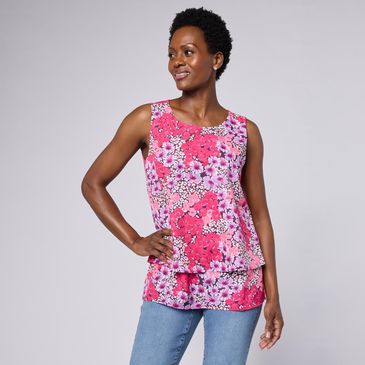 Diane's signature print easy tank brings a breezy, feminine vibe to your wardrobe with its delicate front layers and flowing silhouette. Perfect for layering or wearing solo on warm days, it pairs effortlessly with your favorite jeans or skirts. We love how it adds a touch of elegance to casual looks while keeping you cool and comfortable.