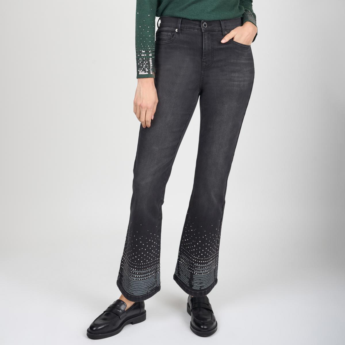 Step out in style with these bootcut jeans featuring dazzling sequin embellishments at the leg openings. Crafted for comfort and a flattering fit, they pair perfectly with your favorite tops for day-to-night wear. Whether dressing up or down, these jeans add a touch of sparkle to your wardrobe.