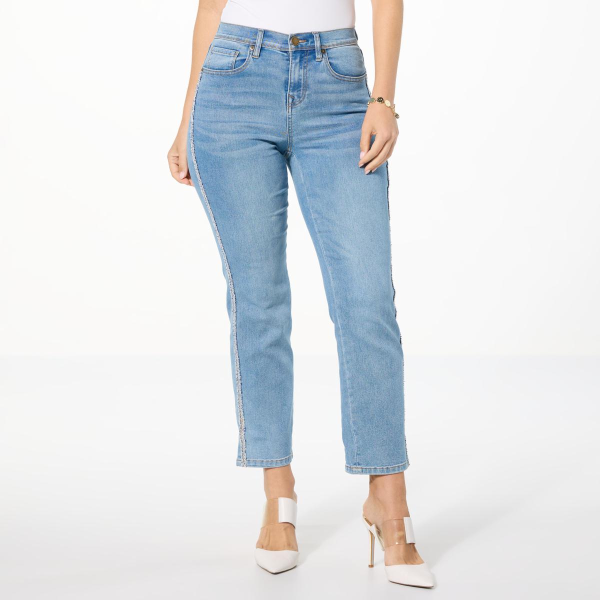 Set off a chain reaction of head-turning (and maybe a wee bit envious) glances whenever you show up wearing these straight-leg ankle jeans with novelty chain detail, and Diane's signature virtual stretch denim with incredible stretch and recovery.