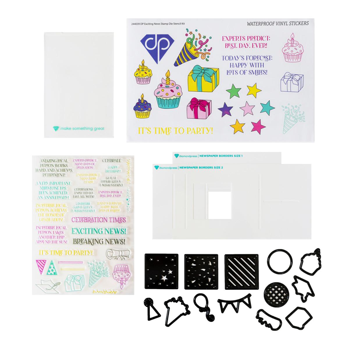 Diamond Press Exciting News Stamp, Die and Stencil Kit