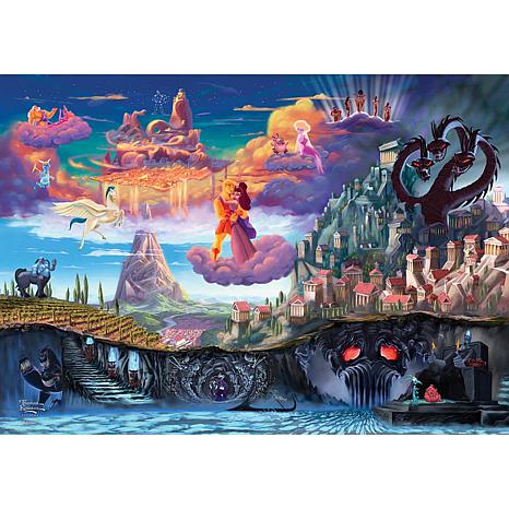 Bring the epic adventures of ancient Greece into your home with this stunning 24" x 17" MightyPrint Wall Art featuring Disney's Hercules by Thomas Kinkade Studios. This vibrant artwork captures the timeless tale of Hercules, depicting iconic scenes with vivid detail, from the hero's triumphant moments in Olympus to his battles in the underworld. Every character, from Pegasus soaring through the skies to Hades brooding in his fiery domain, is brought to life with the masterful artistry that Thomas Kinkade Studios is renowned for.