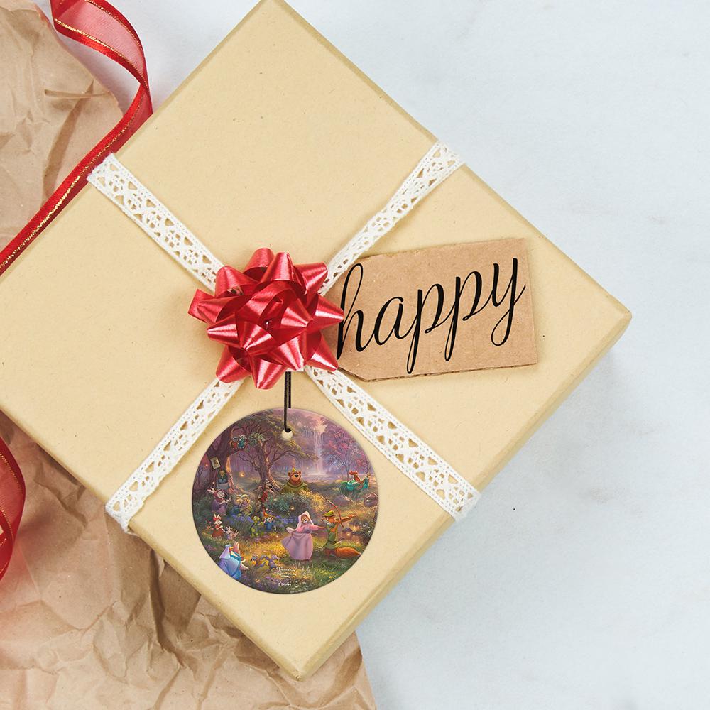 Add a touch of classic Disney magic to your space with this exquisite hanging glass piece. Featuring vibrant artwork by Thomas Kinkade Studios, it beautifully captures Robin Hood, Maid Marian, and their merry friends in a lively Sherwood Forest scene. Perfect for Disney fans and collectors, this decorative glass brings timeless charm and color to any room.