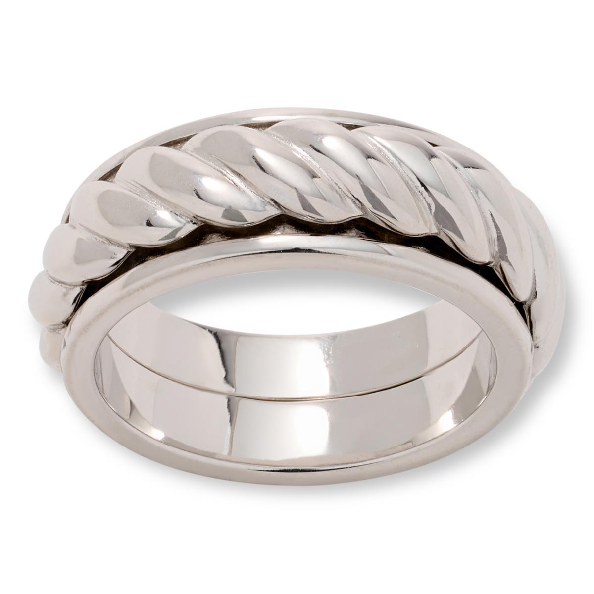 Bring a touch of timeless elegance to your everyday look with this spinner ring featuring a rotating center band detailed with a rope twist design. Designed for comfort and style, the unisex ring is perfect for stacking or solo wear.