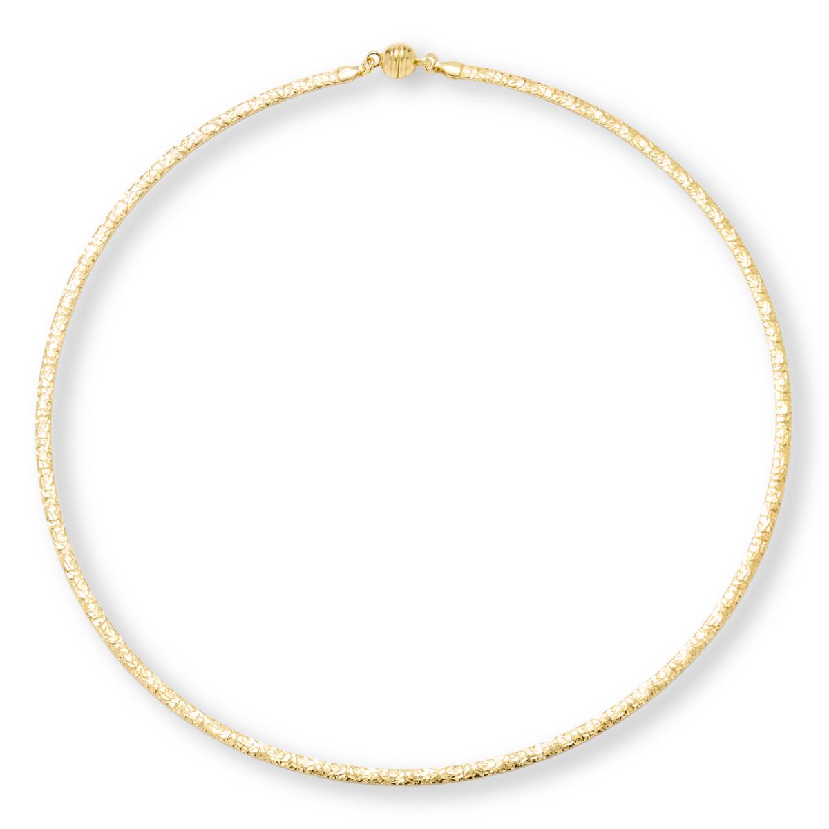 - Omega chain necklace is flat and polished on one side with textured, diamond-cut finish on reverse