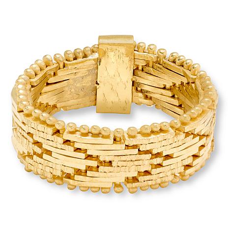 For a bold, elegant look, slip on an Italian classic. This beautiful Riccio chain band ring features arrow motifs, a beaded border and flexible construction for easy on and off. Choose from white rhodium, yellow gold- or tri-color gold-plating.