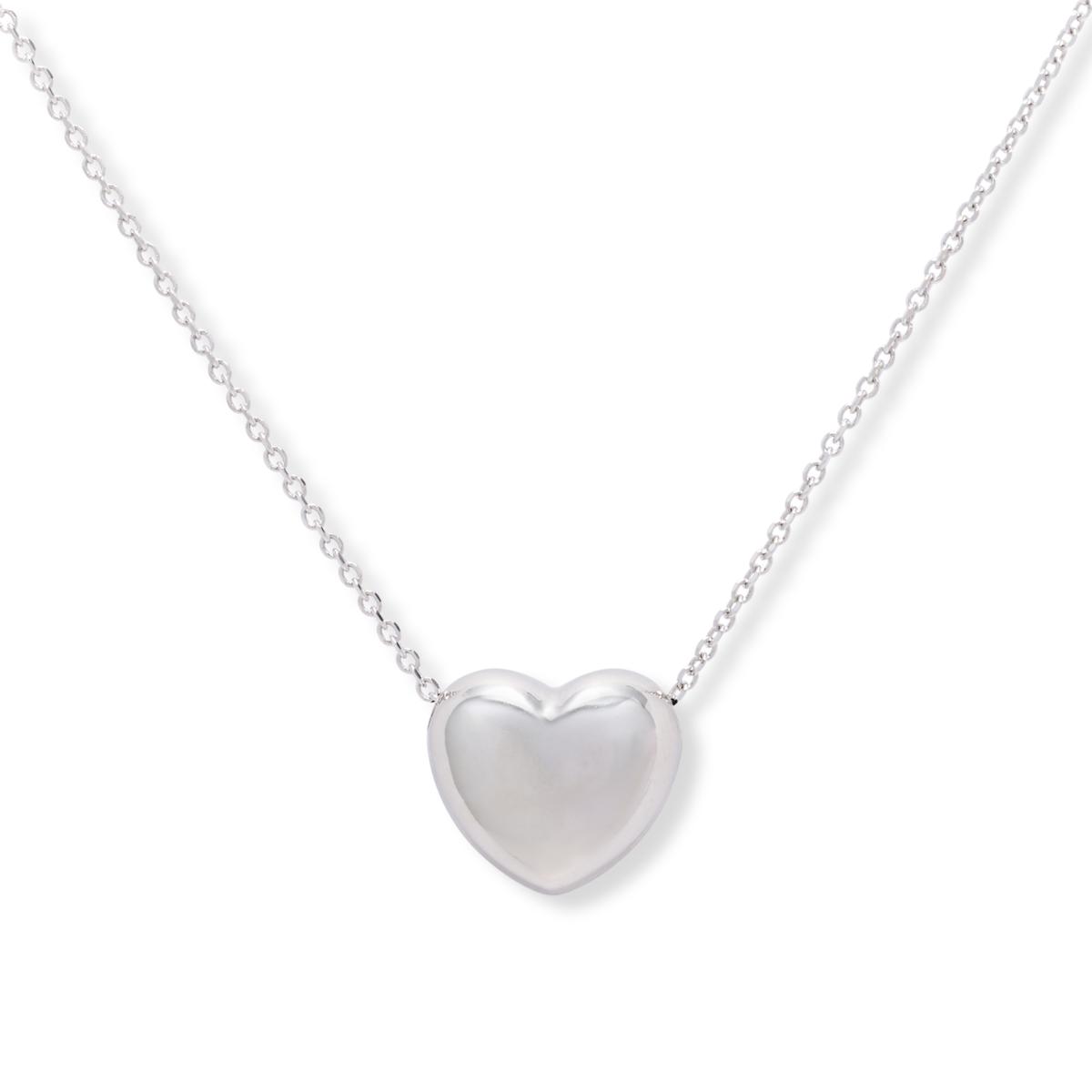 Fiorenza Sterling Silver Puffy Heart Drop Necklace