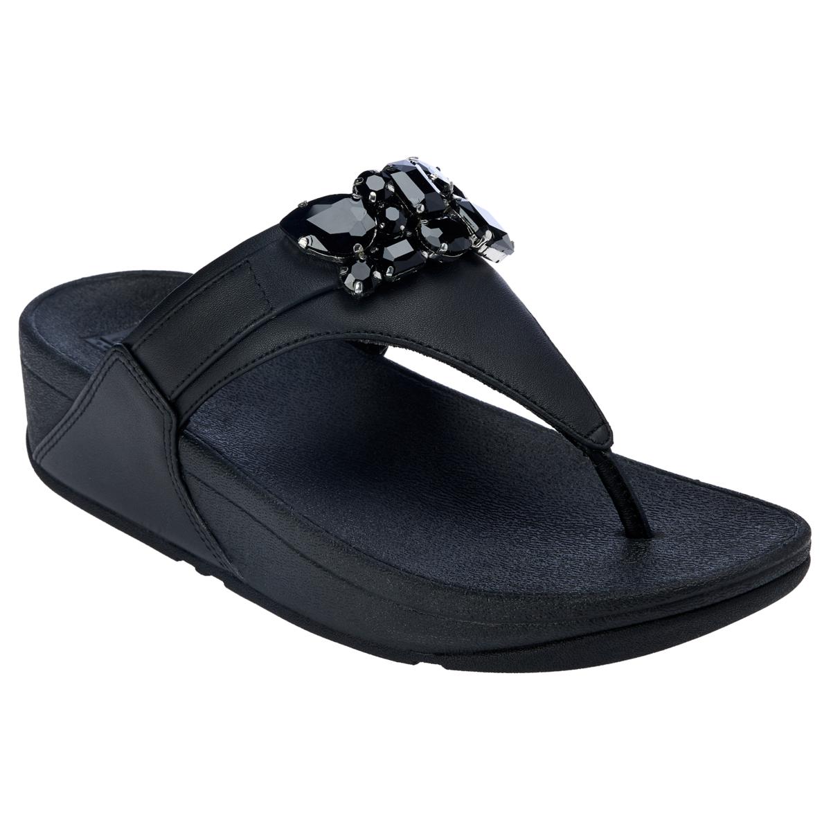 FitFlop's bestselling Lulu sandals boast a timeless triangular vamp, softly padded uppers, and a soft leather toe post. Featuring FitFlop's pressure-diffusing Microwobbleboard midsoles for superb cushioning and non-stop comfort. In this glittering day-to-night version, crafted in soft leather, the Lulu's classic design sets off a cluster of oversize multi-shaped faux jewels. Exceptional comfort. Scene-stealing stones. Whether you're injecting glitz into jeans and a tee or turning up the glamour for a party/night out, these are brilliant in every sense.