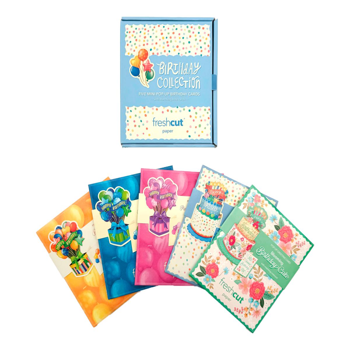 Freshcut Paper Birthday Mini Pop Up, Card & Envelope 5-pack