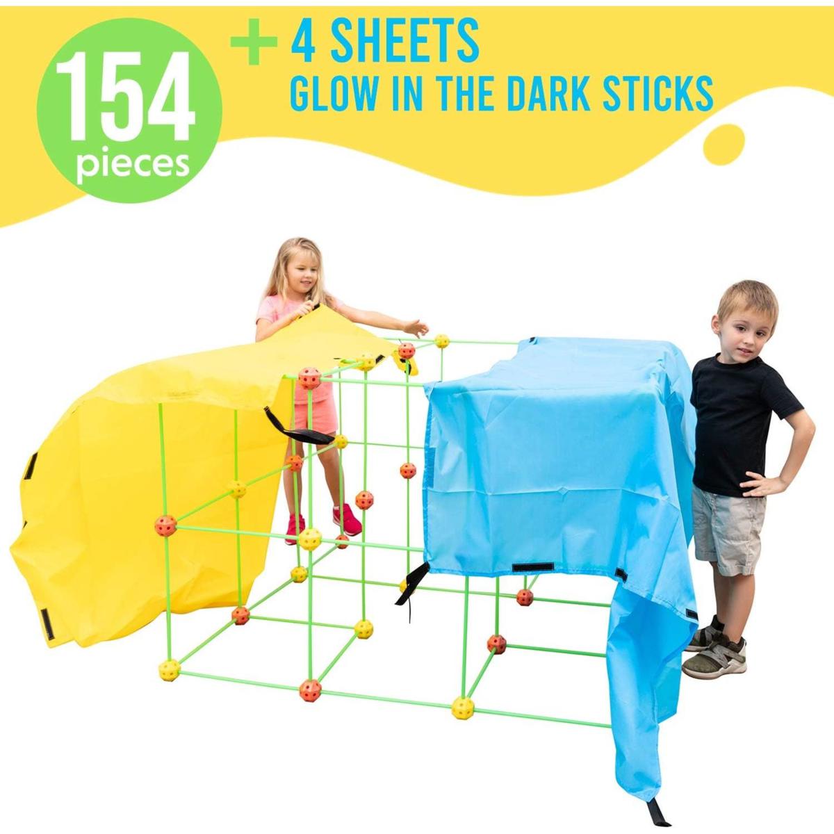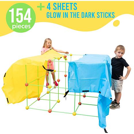 Building a secret hideout is the best game ever and with this 154-piece Funphix Fort Set, the excitement comes supersized! Kids can fully cover the fort or tent they build with the 4 colored sheets to give them the privacy they like! Your kids' completed structures remain sturdy no matter how much they climb on or under them, so they can role play all day in castles, forts, tents, pirate ships, and rockets. At night, their adventures will be lit by the amazing glowing design.