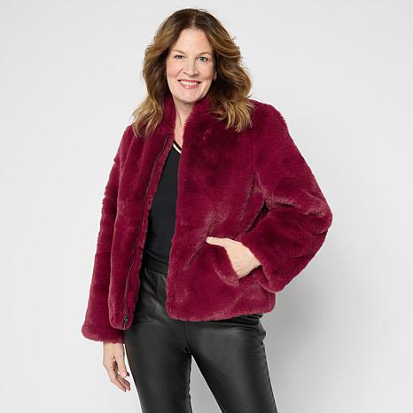 Cozy up in style with this plush faux fur jacket featuring a sleek front zipper and handy slash pockets. Its long sleeves and soft knit construction make it perfect for layering on chilly days. Whether dressing up or down, this jacket adds a touch of luxe to your look.