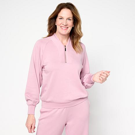 G by Giuliana Marshmallow Knit Sweatshirt with Zip-Up Collar