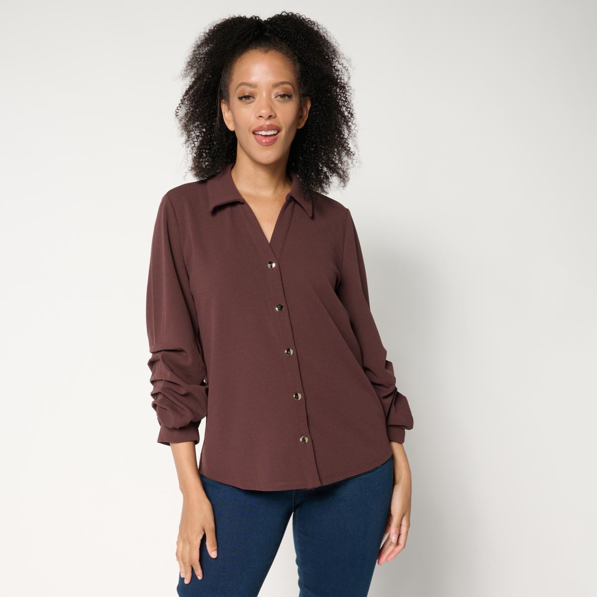 Bring the drama when wearing this shirt from G by Giuliana. Featuring a button-up silhouette, collared neckline, and flattering dramatic pleated sleeves, this design makes it a workday-to-weekend-worthy look you'll love wearing with everything in your closet.