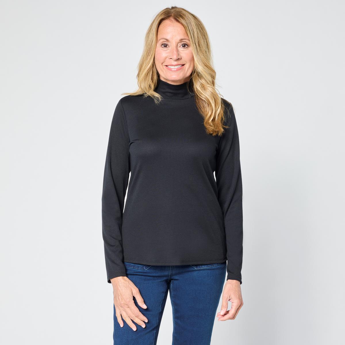 Extend your stylish wardrobe options into fall and winter with this must-have piece. Textured stretch knit, a mini mock neck, and long sleeves layer luxuriously under a blazer, sweater, and yes even a sundress.