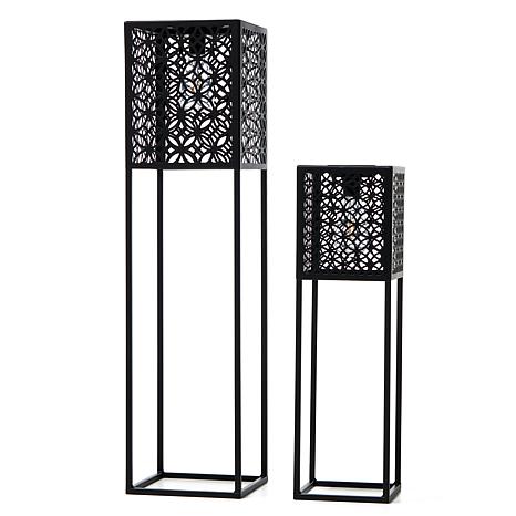 Glitzhome 2-pc. Metal Cutout Solar Powered Edison Bulb Floor Lanterns