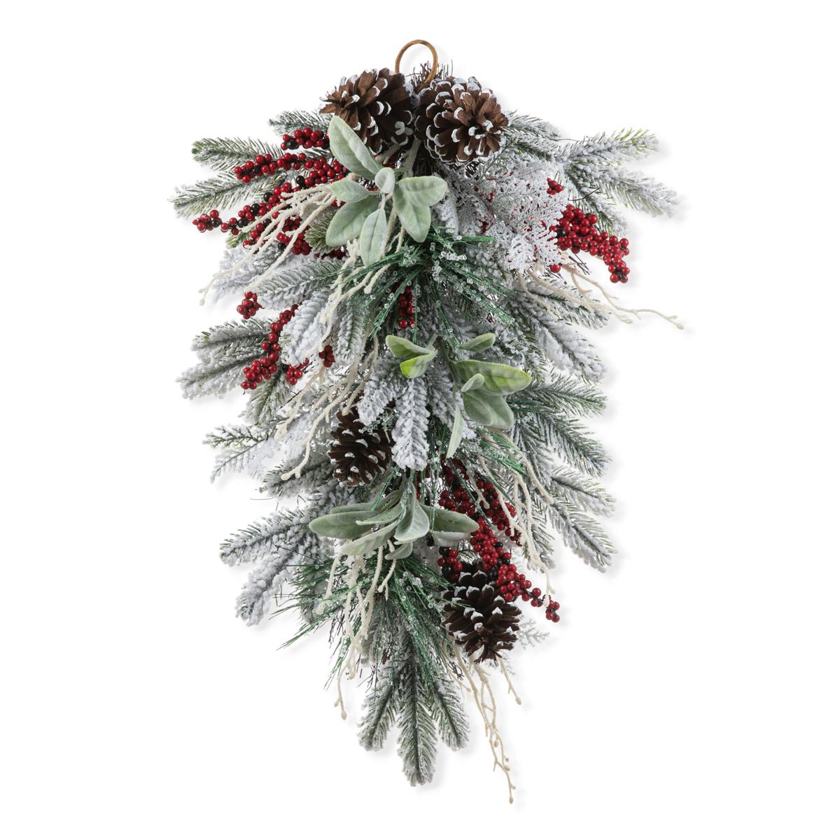 Glitzhome 28" Christmas Flocked Pinecone & Berry Teardrop