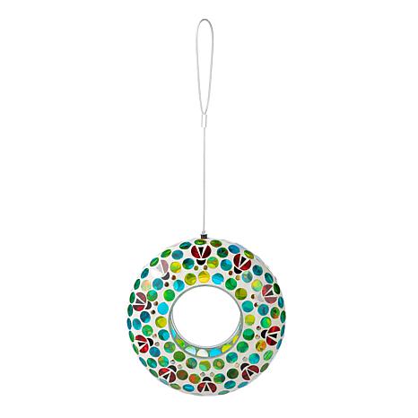 Glitzhome Glass Round Ladybugs Multi-Color Mosaic Birdfeeder