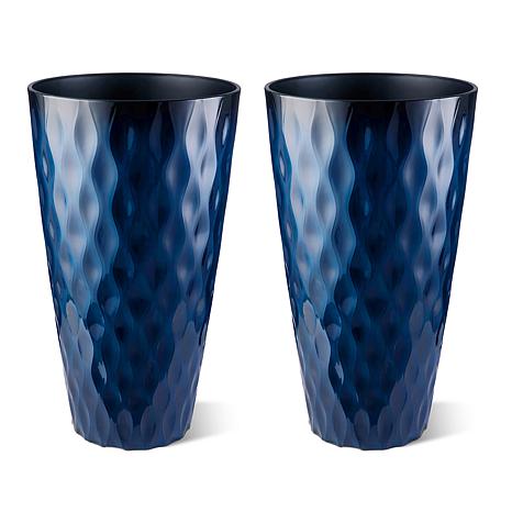 Glitzhome Set of 2 Oversized Wavy Texture Cobalt Blue Plastic Planter