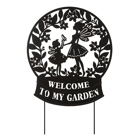 This charming waterglobe silhouette pick brings a whimsical touch to your garden or home. Crafted from metal with a sleek matte black finish, it features delicate flower fairies and floral designs that add a magical vibe wherever you place it. Use it as a decorative pick in your flowerbed or hang it on your wall for versatile style that lasts.