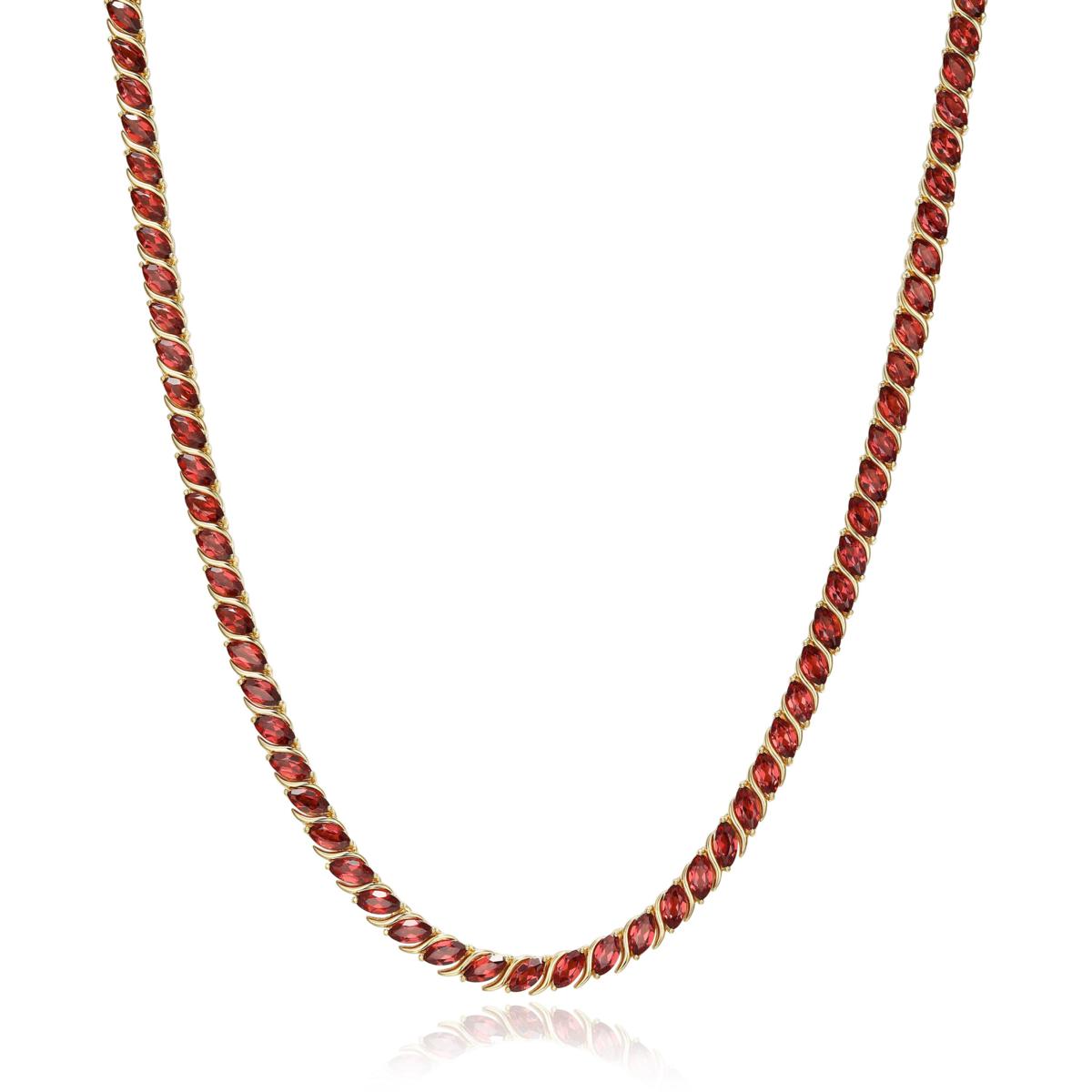 - Tennis-style necklace has marquise-cut blue topaz, purple amethyst, red garnet, orange citrine and green peridot stones prong-set in alternating pattern