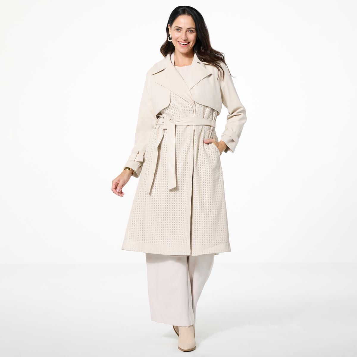 Upgrade your everyday outerwear with this sophisticated faux leather trench. Featuring perforated detail and flawless fit, this coat helps you step out in style.