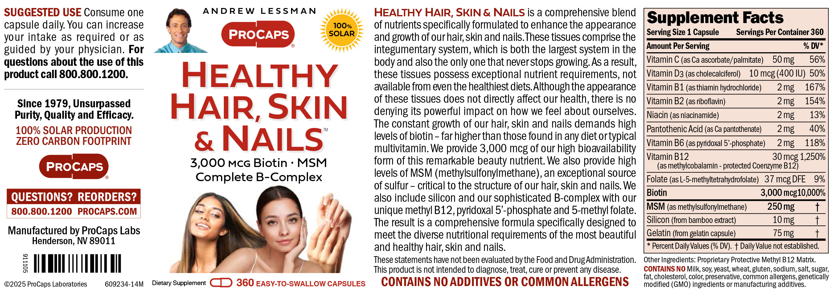 Formulated to support healthy hair, skin, and nails, part of the body's largest and fastest-growing system, with high levels of biotin (3,000 mcg), MSM, silicon, and a sophisticated B-complex to meet the diverse nutrient demands of integumentary tissues.