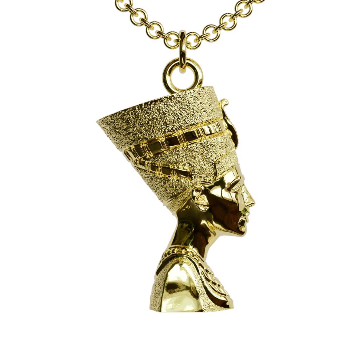 Adorn your neckline with one of the most recognizable silhouettes from ancient Egyptian history. This detailed bust of Queen Nefertiti is symbolic of beauty and strength throughout the ages.